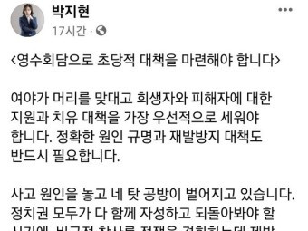 여당의 3선 위원씩이나 되는 행안위원장이라 불리던 여자 국회의원도, 비대위의 대표를 맡고 있으며 2030을 대변하여 젊은 정치를 표방하겠다고 으쓱거리던 여자아이도 만약 그 위치에서 했어야 할 일을 제대로 했다면 지금처럼 SNS에 매달려 사건이 있을 때마다 아무도 주목해주지 않는 공허한 메아리를 목놓아 부르지 않았어도 될 일이었다.