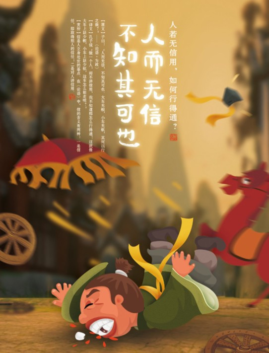 공자께서 말씀하셨다. "사람으로서 성실성이 없다면, 그 가함을 알지 못하겠다. 큰 수레에 소의 멍에 걸이가 없고 작은 수레에 말의 멍에 걸이가 없다면, 어떻게 길을 갈 수 있겠는가?"