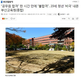 그래서 그 젊은이는 객관적인 증험을 하기 위해 블라인드 면접장에서 있었던 대놓고 찍어주기의 의구심과 함께 공정하게 그 채용이 이루어졌는지를 정식으로 문제제기하였다. 하지만 부산교육청은 채용선발과정에 아무런 문제가 없다고 ‘특별히 문제 될만한 사안이 발견되지 않았기에 감사를 종결한다.’라며 자신들의 조직이 입을 피해와 비난을 부러 만들지 않겠다며 그의 문제제기를 뭉개버렸다.