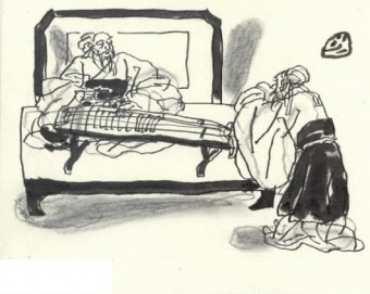 이에 공자는 집사에게 병이 나서 만날 수 없노라고 말을 전하게 했다. 집사가 말을 전하러 나가자마자, 공자는 바로 25 현금을 타면서 노래까지 불러, 자신이 병이 난 것이 아니라 만나기 싫어서 만나지 않는다는 사실을 유비(孺悲)로 하여금 확실하게 알도록 하는 퍼포먼스를 벌인 것이다. 전에 공부하면서 금슬(琴瑟)을 구분하면서 설명한 바 있지만, 瑟은 비파에 가까운 25현의 큰 거문고를 의미한다.