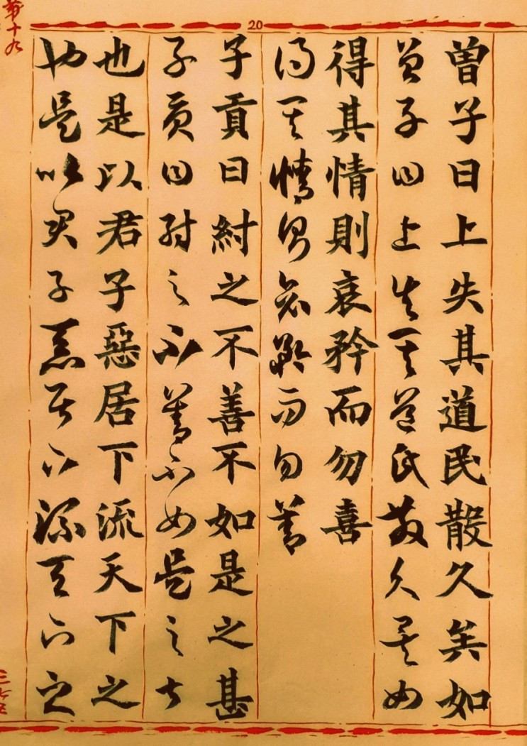 孟氏가 陽膚(양부)를 士師로 임명하자, 〈陽膚가〉 曾子에게 〈獄事의 처리에 관하여〉 물으니, 曾子가 말씀하였다. “윗사람이 도리를 잃어 백성들이 이반(離叛)한 지가 오래되었다. 만일 〈이반한〉 실정을 알면 불쌍히 여기고 기뻐하지 말아야 한다.”