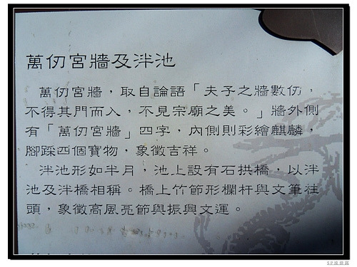 叔孫武叔語大夫於朝曰: “子貢賢於仲尼.” 子服景伯以告子貢. 子貢曰: “譬之宮牆, 賜之牆也及肩, 竅見室家之好. 夫子之牆數仞, 不得其門而入, 不見宗廟之美, 百官之富. 得其門者或寡矣, 夫子之云, 不亦宜乎!”