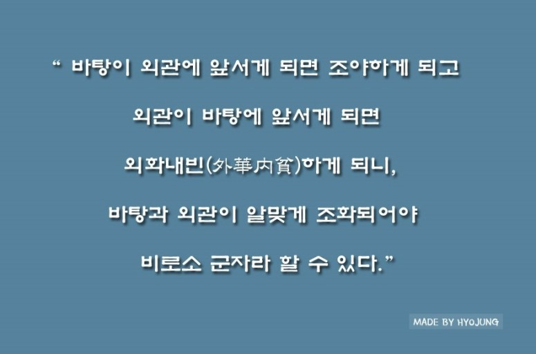 그래서 정자(伊川(이천))는 군자라는 표현으로 공자가 완곡하게 설명한 목표지향점이 마땅히 취해야 할 마음가지과 태도에 대해 다음과 같이 설명한다.