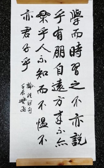 孔子께서 말씀하셨다. “배우고 그것을 때때로(항상) 익히면 기쁘지 않겠는가? 同志가 먼 곳으로부터 찾아온다면 즐겁지 않겠는가? 사람들이 알아주지 않더라도 서운해하지 않는다면 君子가 아니겠는가?”