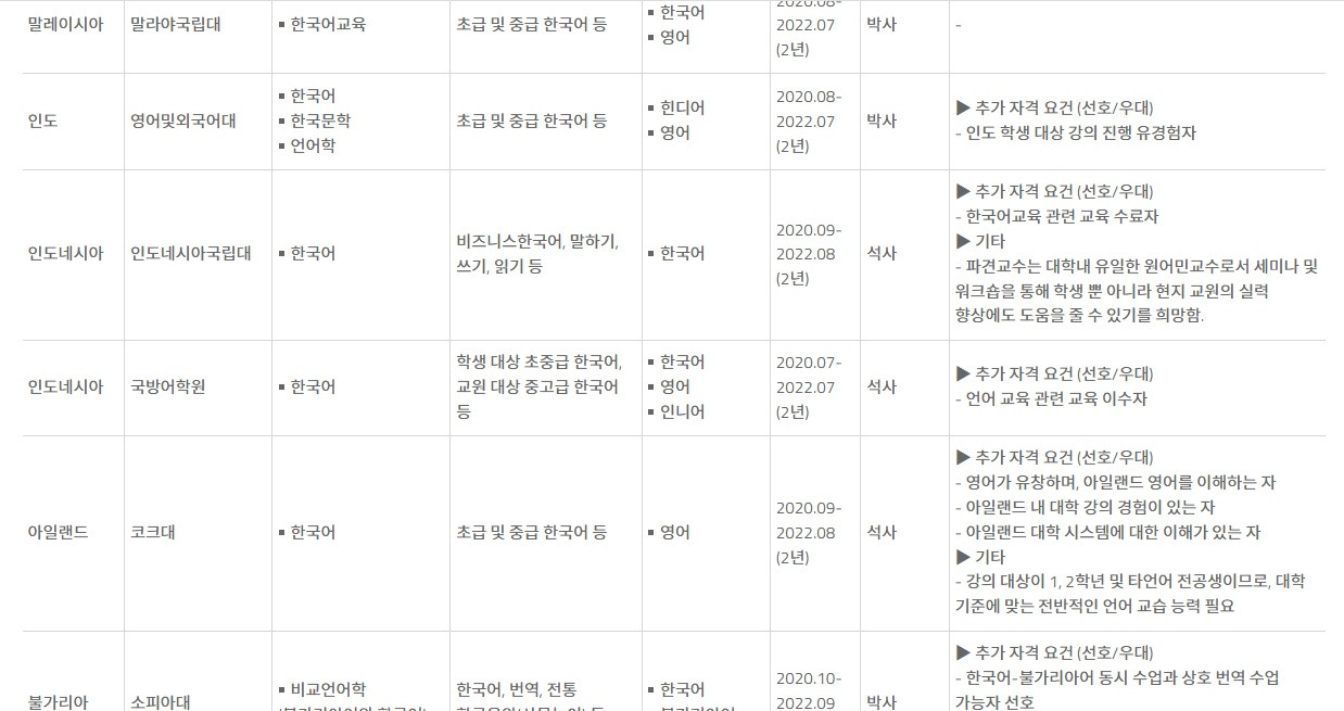 ㅇ 보도에서 언급된 북한학 전공자도 파견대학 측 요청에 따라 한국학과 한국어 모두를 담당하는 객원교수로서, 국내외 대학에서 한국어 및 한국문화·사회, 한국문학 등 강의경력을 다수 보유한 것이 인정되어 대학 측이 최종합격자로 선발하였고, 파견대학에서 한국어뿐만 아니라, 한국학(한국문화와 사회, 한국문학 등)도 강의합니다.