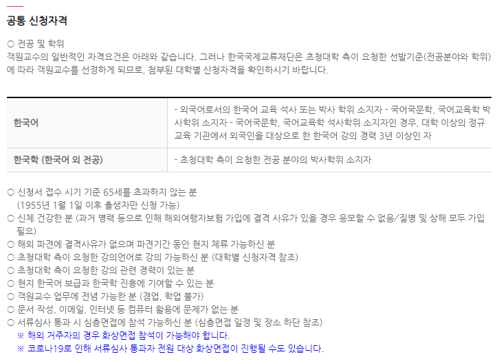한국학을 표방하고 있으니 당연히 객원교수를 모집하는 모집요강의 조건이 없을 리 없었다.