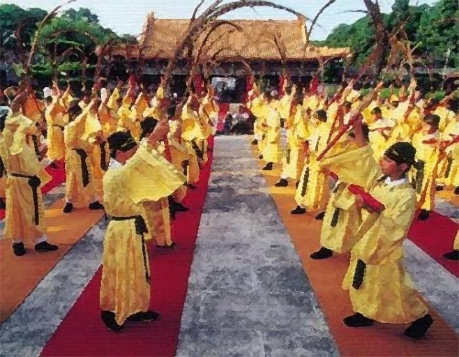 당시의 예법에 의하면 악무를 공연할 때 천자의 무대(舞隊)는 여덟 줄,