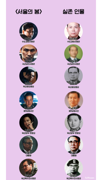 실화지만 모두가 실화는 아니고 그렇다고 모두가 가상의 상상력으로 만든 것은 아니지만 대표적인 정의의 화신이자 주인공인 이태신 장군이 실존인물도 아니거니와 반란군에 반대하고 진압하고자 했던 대표적인 3명의 인물(수경사령관, 특전사령관, 헌병감)의 행적과 워딩이 역사적 팩트는 아님을 이리저리 섞어버린 후, ‘영화적 상상력을 가미했다.’는 한 마디로 모두 퉁쳐버리는 마법(?)을 부린 셈이다.