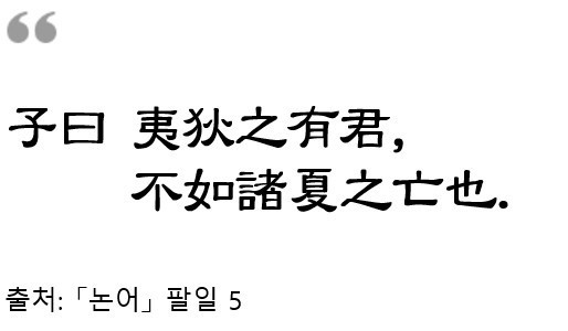 공자께서 말씀하셨다. "오랑캐에게도 군주가 있으니, 중국의 여러 제후국에 없는 것과는 같지 않다."