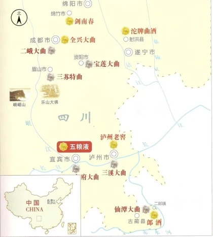 위 지도에서 금장 표시가 중국 명주이다. 17종의 명주 중에서 쓰촨성에만 6개가 몰려 있음을 확인할 수 있다.