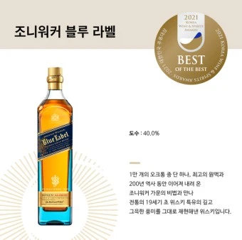 조니 워커의 최고 프리미엄 클래스. 과거에는 ‘Oldest’라는 명칭을 사용하였는데 라벨 바탕색에 파란색을 사용하였고, 이것이 유래되어 조니워커 정규 시리즈가 컬러 라벨 시리즈로 리뉴얼되면서 ‘블루’로 변경되었다.