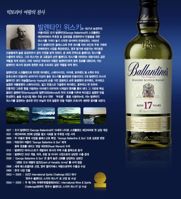 회사의 대표적인 제품인 스탠더드급(NAS, 숙성 년수 미표기) 위스키인 발렌타인 파이니스트(Ballantine's Finest)는 J&B 레어, 조니 워커 레드와 함께 세계에서 가장 많이 팔리는 위스키로 알려져 있다.