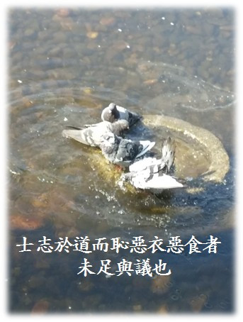 공자께서 말씀하셨다. "선비가 道에 뜻을 두고도 나쁜 옷과 나쁜 음식을 부끄러워하는 자는 더불어 (道를) 의논할 수 없다."