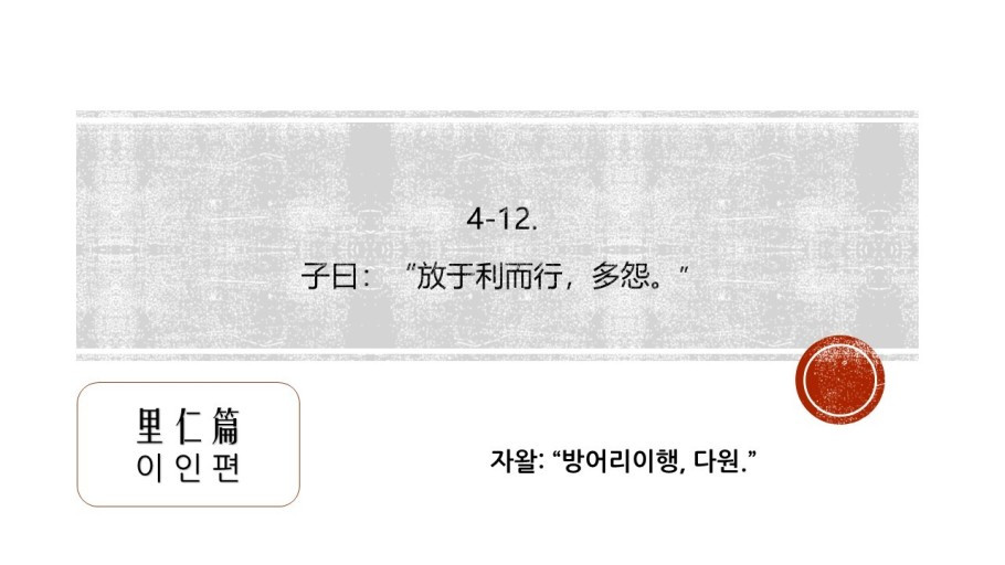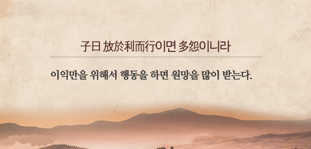 공자께서 말씀하셨다. "이익에 따라서 행동하면 원망이 많다."