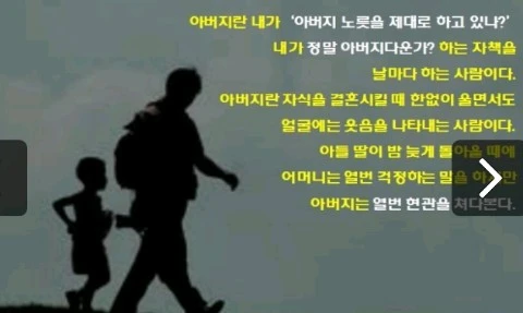 부모님과 떨어져 지내며, 자주 전화도 드리지 않고, 자주 찾아뵙지도 않고, 늘 일 때문에 바쁘다고,시집갔으니 시집에 가야 한다고, 애를 낳았으니 애들 챙기느라 정신이 없다고, 그렇게 당신은 당신을 낳아주고 길러주신 분들에게 소홀해왔다. 적당히 용돈 챙겨드린 답시고 당신의 도리를 다한다고 착각하지 마라. 당신이 나중에 자식들에게 그런 대접을 받았을 때의 서운함을 한 번이라도 다시 떠올려보라. 부모님이 어떤 마음으로 당신을 기다리고 그저 아무런 말씀 없이 오랜만에 본 당신의 얼굴을 물끄러미 바라만 보시고 곁에 앉아 계시는지, 그게 무엇을 의미하는지 곰곰이 되새겨보라.