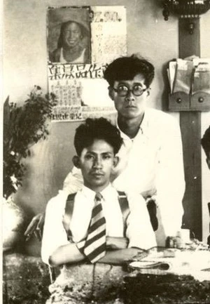 출판사 창문사 사무실에서, 뒤는 소설가 박태원