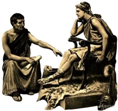 B.C 342년 아리스토텔레스는 고향 마케도니아로 돌아가 어린 시절 친구인 필리포스 2세의 아들, 즉, 왕세자 시절의 알렉산드로스 대왕을 가르친 것으로 유명하다. 특히 그가 추천한 책 <일리아스>는 알렉산드로스 대왕이 평생을 탐독했던 인생책이 되었다고 전한다.