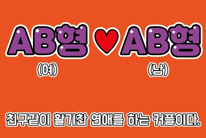 단, AB형 남자는 일반적으로, 외모나 분위기를 모두 만족시켜주는 여자를 선호하는 왕자병 기질의 경향이 있기 때문에 약간의 마찰 가능성도 배재할 수 없으니 주의를 요한다.