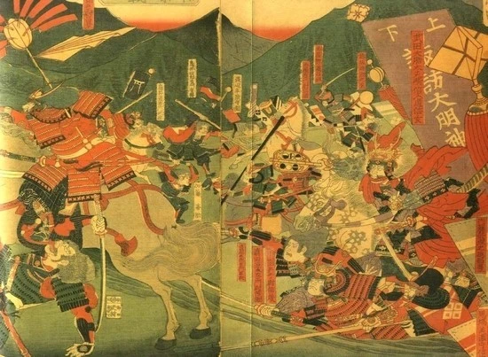 이에 오다와 도쿠가와 연합군이 맞서지만 미카타가하라에서 도쿠가와는 부하들의 만류에도 불구하고 신겐에 맞서는 길을 택했고, 다케다보다 수가 적으면서(1만 1천 명 대 2만 7천 명)도 다수 대 소수에 유리한 학익진으로 도전했는데 다수임에도 불구하고 종심 깊은 어린진으로 대응한 다케다 군에 크게 패배하였다. (전사자 2천 명 대 2백 명) 오다측의 대장, 히라테 히로히데(平手汎秀)는 전사하였고, 이에야스 측은 도리이 시로자에몬, 나루세 마사요시 등의 유력 가신을 잃고 패주하였다. 그것이 이에야스가 겪은 가장 처참했던 패배로 기록되는 그 유명한 ‘미카타가하라 전투(三方ヶ原の戦い)’였다.