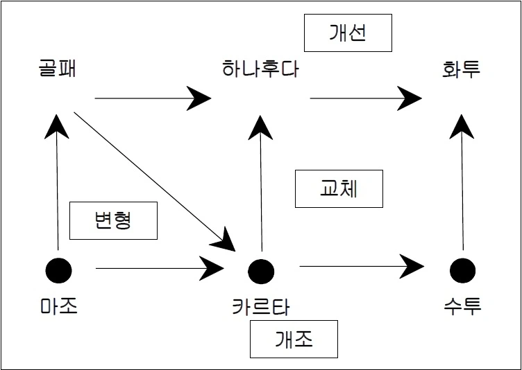 결과적으로 14세기 이전부터 도박계의 한류가 있어, 고대 신라시대 나온 수투라는 노름이 서양의 카드에 영향을 미쳤고, 그 유럽의 카르타가 다시 일본의 하나후다에 영향을 미쳐 탄생하게 하였고, 그 하나후다의 영향을 받아 현재 한국의 화투가 탄생하게 되었다는 어마어마한 '고대 한류 뫼비우스 띠식' 연구의 결과를 지금 당신은 보고받고 있는 것이다.