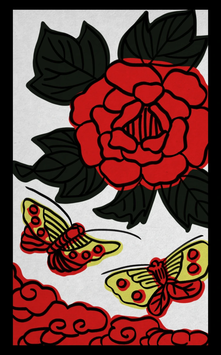 부활을 상징하는 나비와 꽃의 왕이라는 모란이 함께 그려진 6월의 하나후다가 갖는 의미는 결국 매우 경사스러운 소재가 아닐 수 없는 것이다.