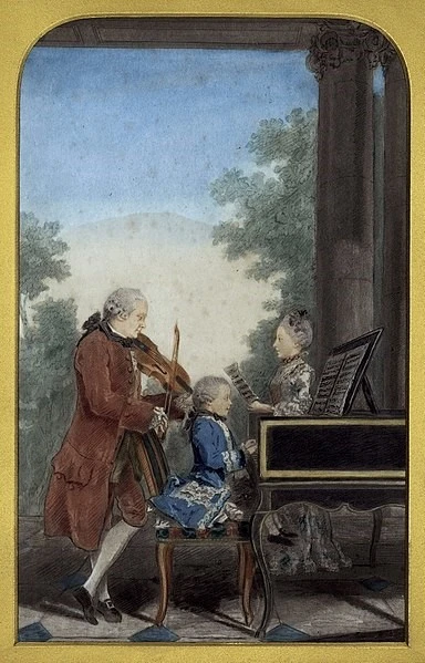 아버지는 아들의 작곡 능력을 확인하고는 스스로 작곡하기를 그만두고 아들의 피아노와 바이올린 교육에만 전념하는 것으로 삶의 목표를 집중한다. 그리고 마침내 아들의 나이 불과 6살이 되던 1762년, 온 가족을 이끌고 유럽 연주 여행길에 오르게 된다. 이 음악 유랑 여행은 무려 10년이나 계속된다. 음악 신동인 아들을 유럽 각지에 알리기 위한 것에서 시작된 이 여행의 패턴은, 가는 곳마다 유명하다는 음악가를 찾아 아들에게 한 수 음악을 지도해달라며 선보이는 방식으로 이루어졌다.