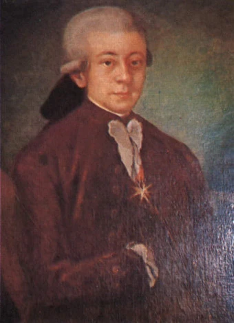 황금 박차 훈장을 달고 있는 모차르트. (1777년)