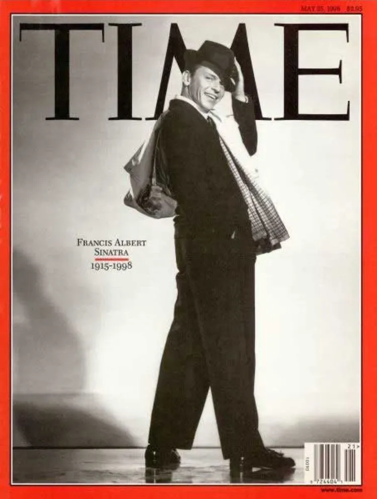 1998년, 프랭크 시나트라는 급성 심장마비로 사망한다. 향년 82세. 그의 사망 소식이 전해지자, 뉴욕시에 있는 엠파이어 스테이트 빌딩의 불빛이 파랗게 변했고, 라스베이거스 스트립은 그를 위해 불빛을 희미하게 흐리게 했고, 카지노는 1분 동안 중지되었다. 프랑스 대통령 자크 시라크를 비롯하여 토니 블레어 영국 총리와 당시 대통령이던 빌 클린턴 미국 대통령까지 공식 성명을 통해 그의 사망을 애도했고, 위의 사진처럼 전성기의 그의 사진을 그 달의 <타임즈>의 커버를 장식한다.
