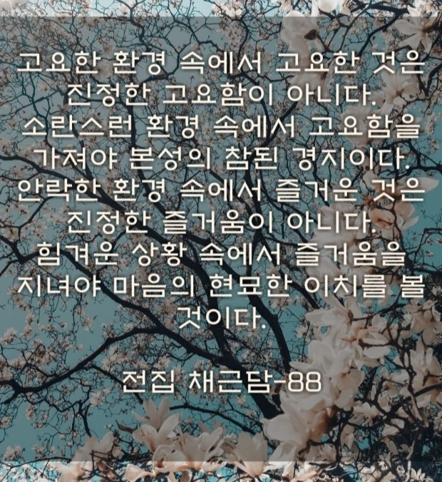 그 즐거움에 빠지게 되면 안회가 보였던 것처럼, 적당히 배고픔만 해결하고 적당히 누울 수 있는 공간만 있다면, 굳이 그것이 ‘그 즐거움’을 누리는데 방해가 되지 않는다는 의미가 바로 이 장의 온전한 해석이고, 가르침이다.