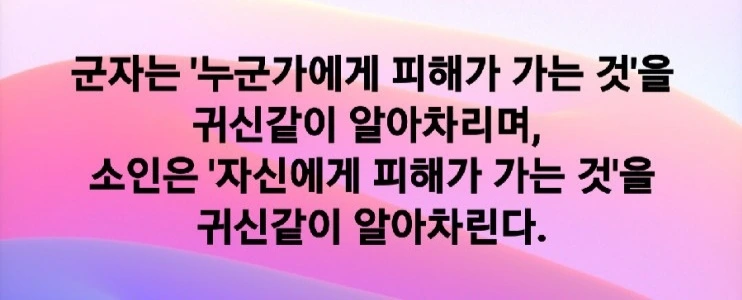 군자와 소인으로 구별했다는 것은 나아갈 바와 하지 말아야 할 바를 명확하게 구분할 경우에 사용한다고 공부한 바 있다. 그런데 그 구별의 기준은 여러 가지가 있을 수 있다.