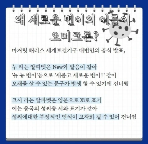 '오미크론'이라는 새로운 변이가 나오고, 사람들은 다시 경악했다. 그런데 그것이 치사율이 이전 델타 변이라는 녀석보다 높지 않다는 이야기가 솔솔 나오면서 사람들은 ‘어휴!’하면서 가슴을 쓸어내렸고, 유럽에서 자유를 표방한다고 하면서 백신의 의무화를 거부하는 데모를 하는 이들의 양상이 더욱 거세졌다고 한다.