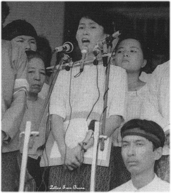 그리고 8월 26일 희생당한 시민 시위대의 시신이 안치된 양곤의 종합병원 앞에서 몇십만의 남녀노소 버마 국민들이 운집한 가운데 민주화를 위한 연설을 하게 된다. 이것이 당신이 익히 들어본 미얀마 민주화의 상징, 아웅 산 수 치 여사의 제2의 인생이 시작되는 순간이다.