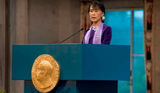 그녀는. 1991년 노벨평화상을 수상하였으며, 2015년 총선 승리를 이끌어 미얀마의 오랜 군부 집권을 종식시켰다. 2016년부터 미얀마의 실질적 국가원수인 국가 고문 겸 외교부 장관이자 소속 정당인 민족민주연맹(National League for Democracy, NLD)의 의장 겸 사무총장을 지냈다. 그러나 실질적인 권력은 군부가 쥔 차였고, 군부들의 로힝야족, 카렌족을 비롯한 일부 소수민족들 학살과 억압을 방조했다는 비판도 들었으며, 2020년 총선에서 민족민주연맹이 거대 의석을 가지게 되자 이에 반발한 군부에 의해 2021년 2월 1일 군부 쿠데타로 실각하였다.