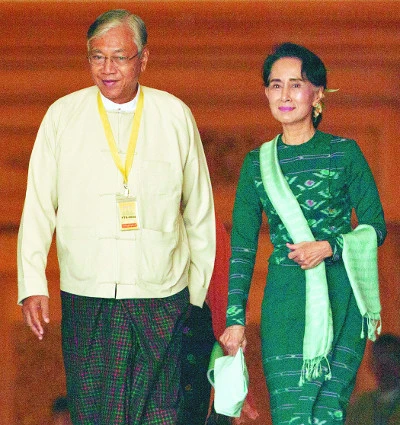 하지만, 외국인을 배우자로 둔 경우 대통령이 될 수 없다는 미얀마 법 조항으로 인해 2016년 3월 수 치의 운전자 출신이자 측근인 틴초(Htin Kyaw)가 대통령으로 취임하는 코미디가 벌어진다.