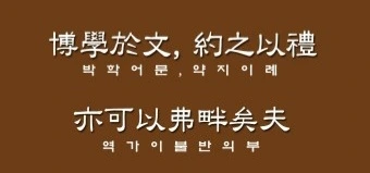 “널리 文을 배우고 禮로 요약하지 않으면, 반드시 한만(汗漫)함에 이를 것이다. 널리 배우고 또 능히 예를 지켜 법도[規矩]를 따르면 또한 道에 위반되지 않을 것이다.”