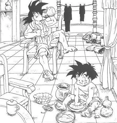 시간과 정신의 방에서 아들과 수련하는 손오공