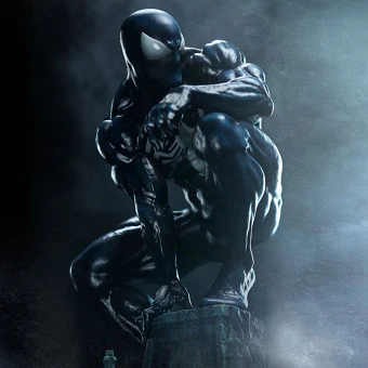 스파이더맨이 다른 세계에 지원을 갔다가 자신의 몸에 붙어서 데리고 왔다. 이때가 1984년 연재된 ‘시크릿 워즈’ 시점이었다. TAS에서는 달 탐사를 하는 도중 한 광물에 붙어서 지구로 돌아가다가 사고를 일으켜서 스파이더맨이 승무원들을 구조하다가 스파이더맨에게 붙어 오는 것으로 묘사된다.