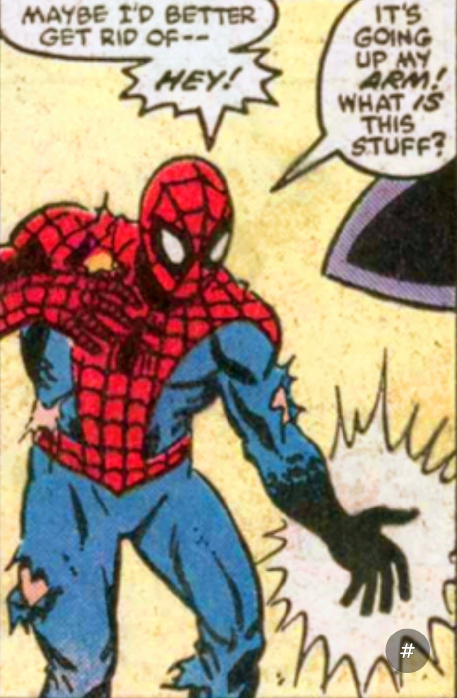숙주의 신체 능력 전반을 향상시켜 주지만 동시에 호전성과 폭력성이 증폭되는 데다 마지막에는 숙주를 먹어버린다. 그것을 깨달은 스파이더맨이 겨우겨우 떼어내지만 에디 브록에게 붙어 베놈이 된다.