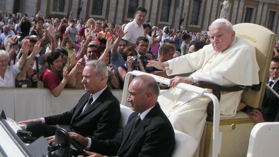 교황 전용차에 탑승한 말년의 요한 바오로 2세