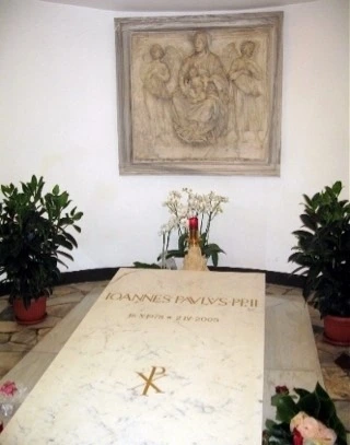 성 베드로 대성전 지하 묘역에 안치된 요한 바오로 2세의 무덤