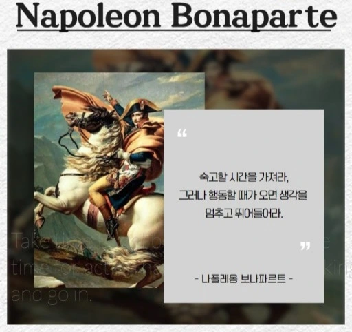 나폴레옹은 운을 믿지도 않았고, 기다리지도 않았다. 늘 스스로 준비했고, 스스로 기회를 만들었고, 없는 인맥도 만들어냈으며, 더 높은 곳을 바라보며 노력하기를 멈추지 않았다.