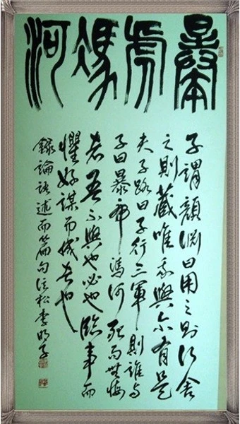 孔子께서 顏淵에게 일러 말씀하셨다. “써주면 道를 행하고 버리면 은둔하는 것을 나와 너만이 이것을 지니고 있을 뿐이다. 子路가 말하였다. “夫子께서는 三軍을 통솔하신다면 누구와 함께 하시겠습니까?” 공자께서 말씀하셨다. “범을 맨손으로 잡으려 하고 맨몸으로 江河를 건너가려다가 죽어도 후회함이 없는 자를 나는 함께 하지 않을 것이니, 나는 반드시 일에 임하여 두려워하고, 도모하기를 좋아하여 성공하는 자를 데리고 할 것이다.”