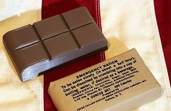허쉬 초콜릿은 제2차 세계대전 때 미군에 바형 초콜릿을 납품했다. 이 바들을 일명 ‘레이션 D 바’라고 한다. 육군은 허시에게 레이션 D 바를 주문하면서 특이한 요구사항들을 달았다. 무게는 1-2 온스(28-57 그램)이어야 하고, 화씨 90도(섭씨 32도) 이상에서만 녹아야 하며, 병사들이 비상식량을 몰래 까먹지 않도록 불쾌한 맛이 나야 한다는 것이었다.