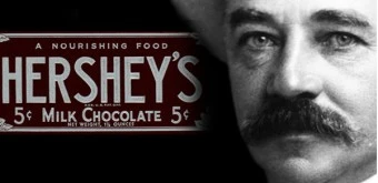 1900년 랭커스터 캐러멜사를 매각한 밀턴은 랭커스터 북서쪽으로 50킬로미터 떨어진, 자기 고향인 데리 면 근교의 농지를 구입했다. 하지만 그 공장을 짓기 3년 전, 밀턴은 한 가지 연구를 시작했었다. 그 연구는 ‘밀크 초콜릿’에 대한 것이었다. 당시에는 밀크 초콜릿이 브랜드 ‘네슬레(Nestle)’가 있던 스위스에서만 유일하게 공급되어 값이 비싸 부유층들만이 즐길 수 있었다.