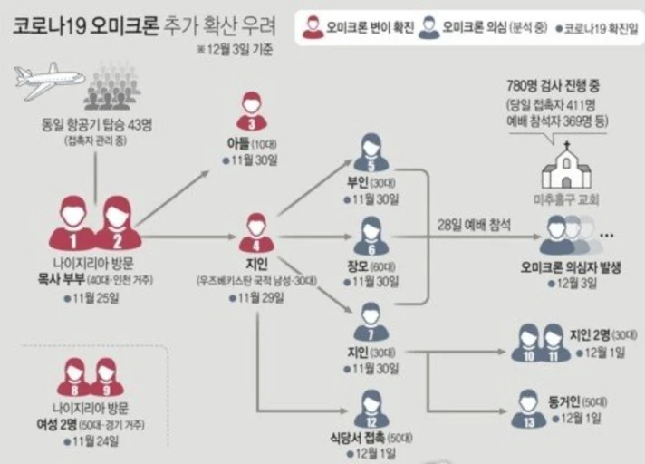 또 목사부부였다. 그들이 얼마나 학술적으로 대단한 이들이었는지 모르겠으나 그 와중에 나이지리아에 학술세미나를 참석하였고, 에티오피아를 거쳐오면서 오미크론을 몸속에 담아왔다. 초기 역학조사에서는 공항에서 자택으로 이동할 때 방역 택시를 탔다는 거짓말을 스스럼없이 했다. 그들을 데리러 나왔던 외국인 운전자는 그렇게 자신의 가족과 그 교회 관련자들과 예배를 치르면서 급속도로 오미크론을 퍼트리는 결과를 낳았다.