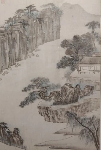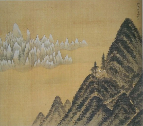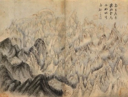 화면을 가득 채운 단단하고 묵직한 화강암 덩어리는 검고 윤기 나는 먹을 겹겹이 칠하고, 붓을 힘차게 죽죽 그어내려 남성적인 기세를 드러내고 있다. 그러나 이 산은 강인하기만 하여 사람을 짓누르는 산이 아니다. 산 중턱에는 하얀 연기구름에 감싸인, 사람이 깃들일 만한 정자가 한 채 있어 부드러운 시적 정취를 돋우고 있다.