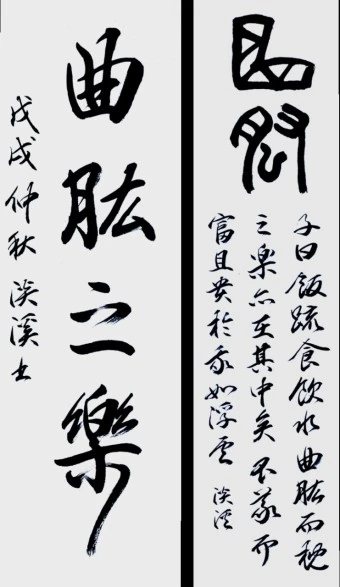 공자께서 말씀하셨다. “거친 밥을 먹고 물을 마시며 팔을 굽혀 베더라도 樂은 또한 그 가운데 있으니, 의롭지 못하고서 富하고 또 貴함은 나에게 있어 뜬구름과 같으니라.”