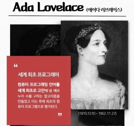 세계 최초의 프로그래머가 컴퓨터가 나오기도 전에 먼저 나왔다는 이야기를 처음 들어서 많이 당황했을 것이라 생각한다.