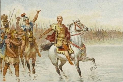 결국 카이사르는 자신의 군대와 함께 루비콘 강을 건너 로마 본토로 들어온다. 여기서 강을 건너며 했던 그의 유명한 말이 이후에 전해진다.