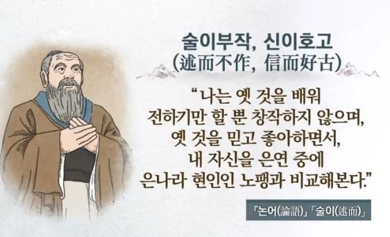 따라서 ‘술이부작(述而不作)’이란 과거에 함몰되라는 것이 아니라 과거에서 현재로 이어지는 시대변화의 흐름을 정확히 파악하지 못하고 섣부른 예측이나 어설픈 독창성을 내세운 독단적인 학문 태도나 아집은 좋지 못한 결과로 이어진다는 경고의 메시지로 보아야 한다.